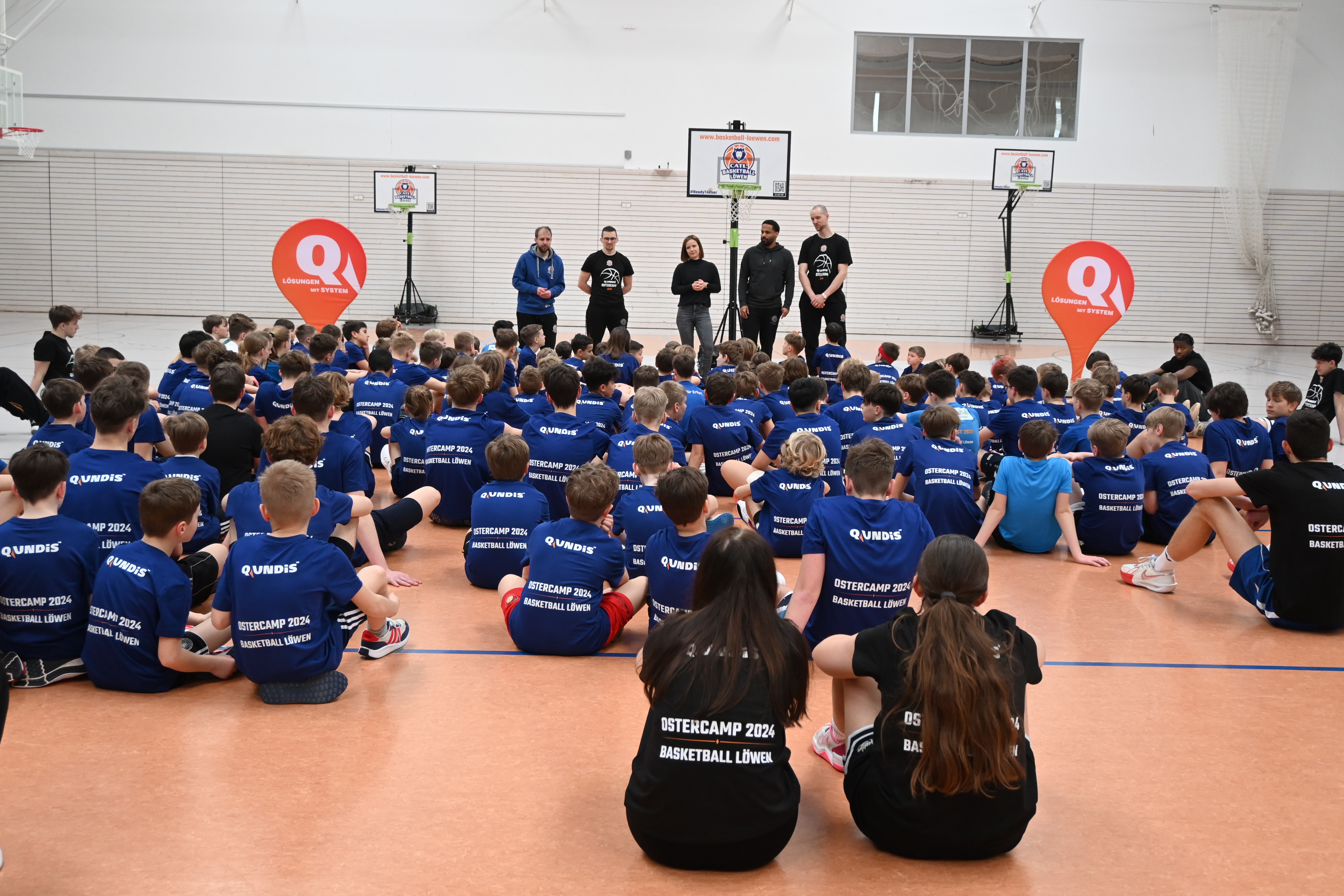 The annual Easter camp of the Basketball Löwen Erfurt took place from 25 to 28 March 2024. The camp has become a tradition and makes an important contribution to inspiring children and young people from the region – not just to play basketball, but also to get more exercise and participate in sports in general. During the several-day camp they not only learn important basics such as dribbling and different types of basketball shot, but also values such as team spirit and the benefits of sporting exercise.