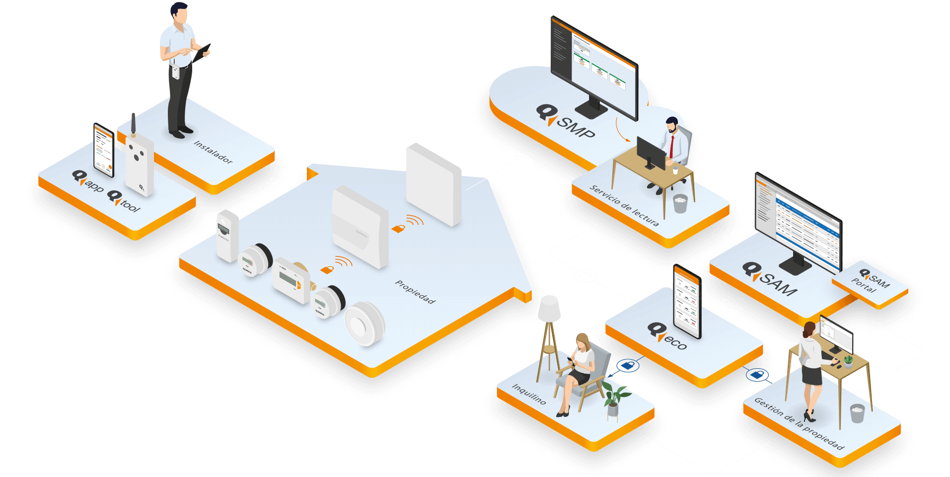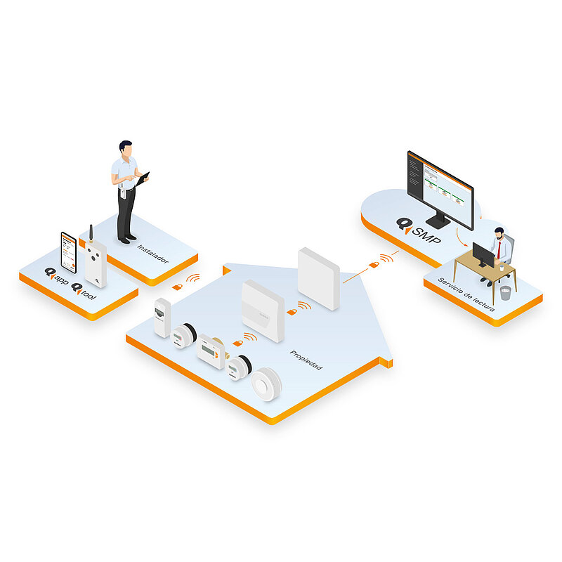 QUNDIS plataforma de medidores inteligentes (Q SMP) es el siguiente paso hacia la automatización completa de la lectura remota de los medidores. Mientras que el sistema de lectura remota de los medidores de QUNDIS (Q AMR) permite registrar los datos de consumo a distancia, Q SMP administra y supervisa el proceso.